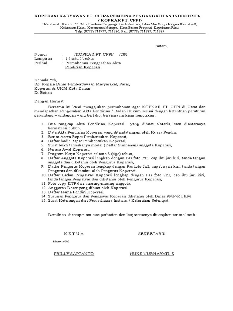 25/per/kukm/ix/2015 tentang revitalisasi koperasi umum sekelompok orang yang akan membentuk koperasi wajib . Maksud dan tujuan serta bidang usaha; Sekilas tentang syarat dan tata cara pendirian koperasi · 1. · neraca awal dan neraca terakhir. Setelah nama disetujui, tahapan selanjutnya adalah pembuatan akta .